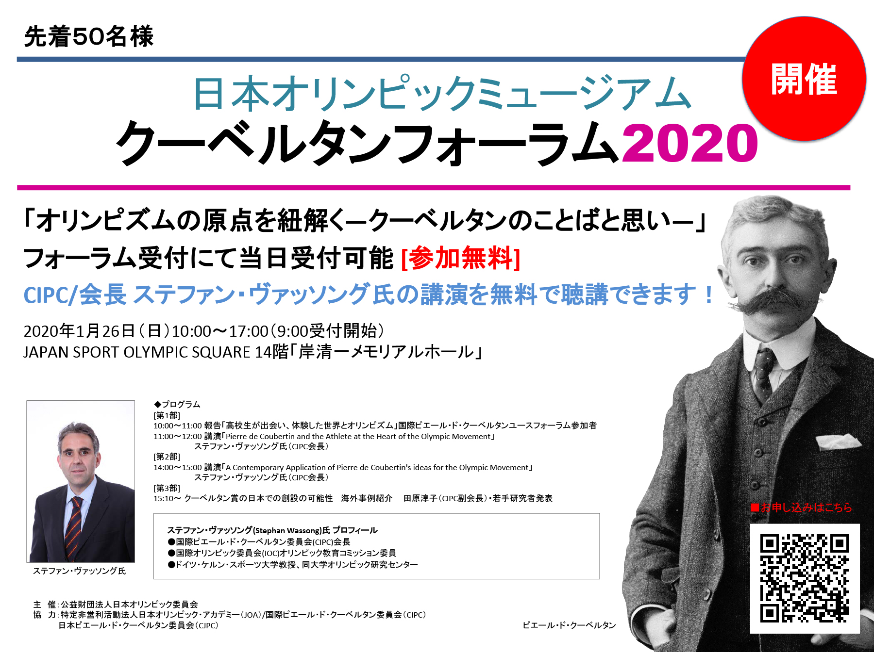 The CIPC President, Prof. Dr. Stephan WASSONG, visited the newly inaugurated Japan Olympic Museum (JOM) in Tokyo and actively participated at the ‘Coubertin Forum 2020’organized by the Japanese Olympic Committee. President WASSONG gave two lectures: ‘Pierre de Coubertin and the Athlete at the Heart of the Olympic Movement’, and ‘A Contemporary Application of Pierre de Coubertin’s ideas by the Olympic Movement’.