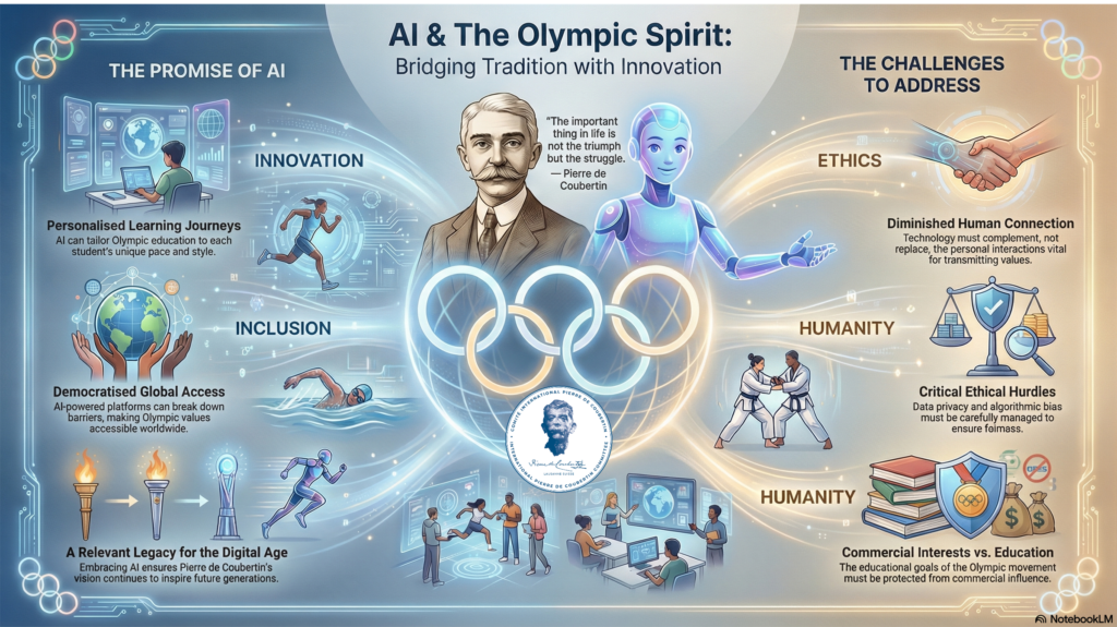 As part of its ongoing commitment to innovation in Olympic values education, the International Pierre de Coubertin Committee (IPCC) is proud to announce the development of three follow-up workshops for teachers across the global Coubertin School network. These workshops will provide hands-on exploration of responsible AI tools and methods, empowering educators to integrate technology thoughtfully into values-based Olympic education. Each session will feature a lecture, interactive discussion, and practical experience with cutting-edge AI applications, all designed to help educators harness the transformative potential of AI while preserving the enduring values of the Olympic tradition.